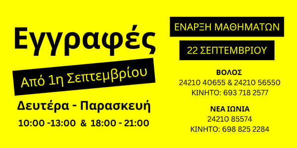 - Άριστη ποιότητα μαθημάτων και σύγχρονες εγκαταστάσεις σε δύο όμορφα κτήρια πολύ κοντά στο κέντρο του Βόλου και Νέας Ιωνίας